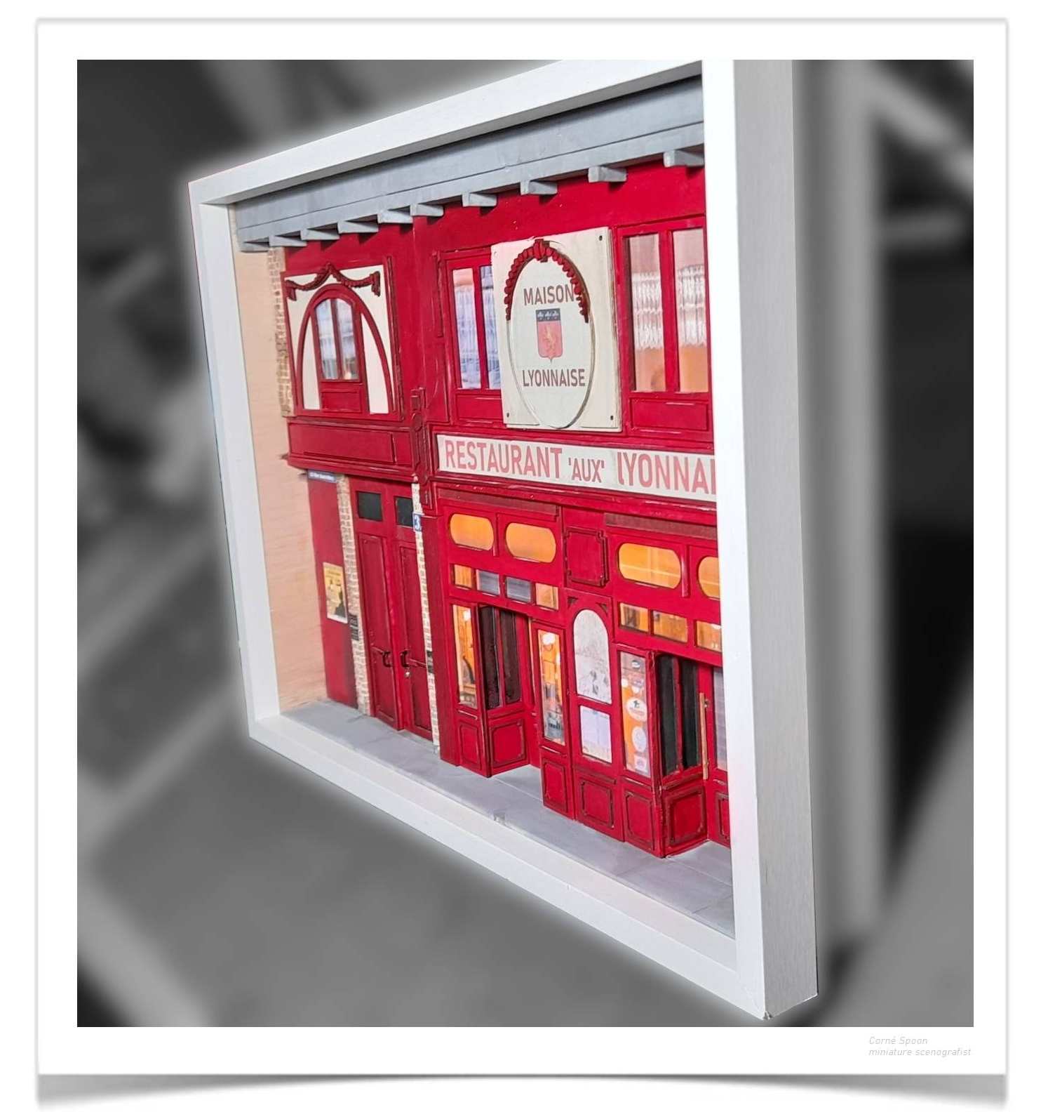 Breng de charme van Lyon in huis met deze met de hand vervaardigde miniatuur van het nog steeds bestaande Restaurant Aux Lyonnais. Elk detail — van de warme verlichting tot de karakteristieke rode gevel — ademt Franse sfeer en vakmanschap. Een uniek kunstwerk dat de ziel van een klassiek Lyonnais restaurant vangt en elke ruimte verrijkt. Perfect voor liefhebbers van Frankrijk, miniaturen en authentieke ambiance.