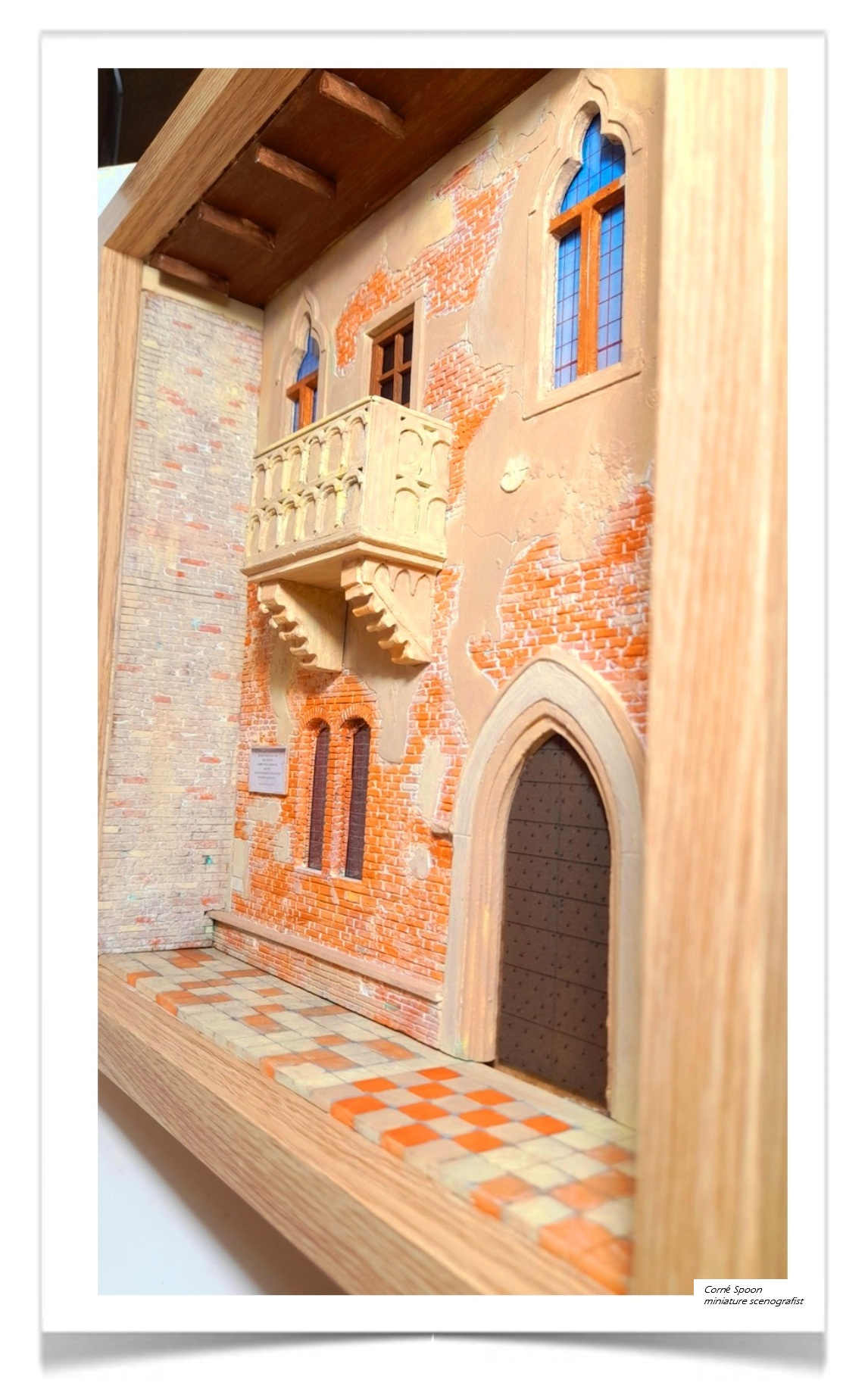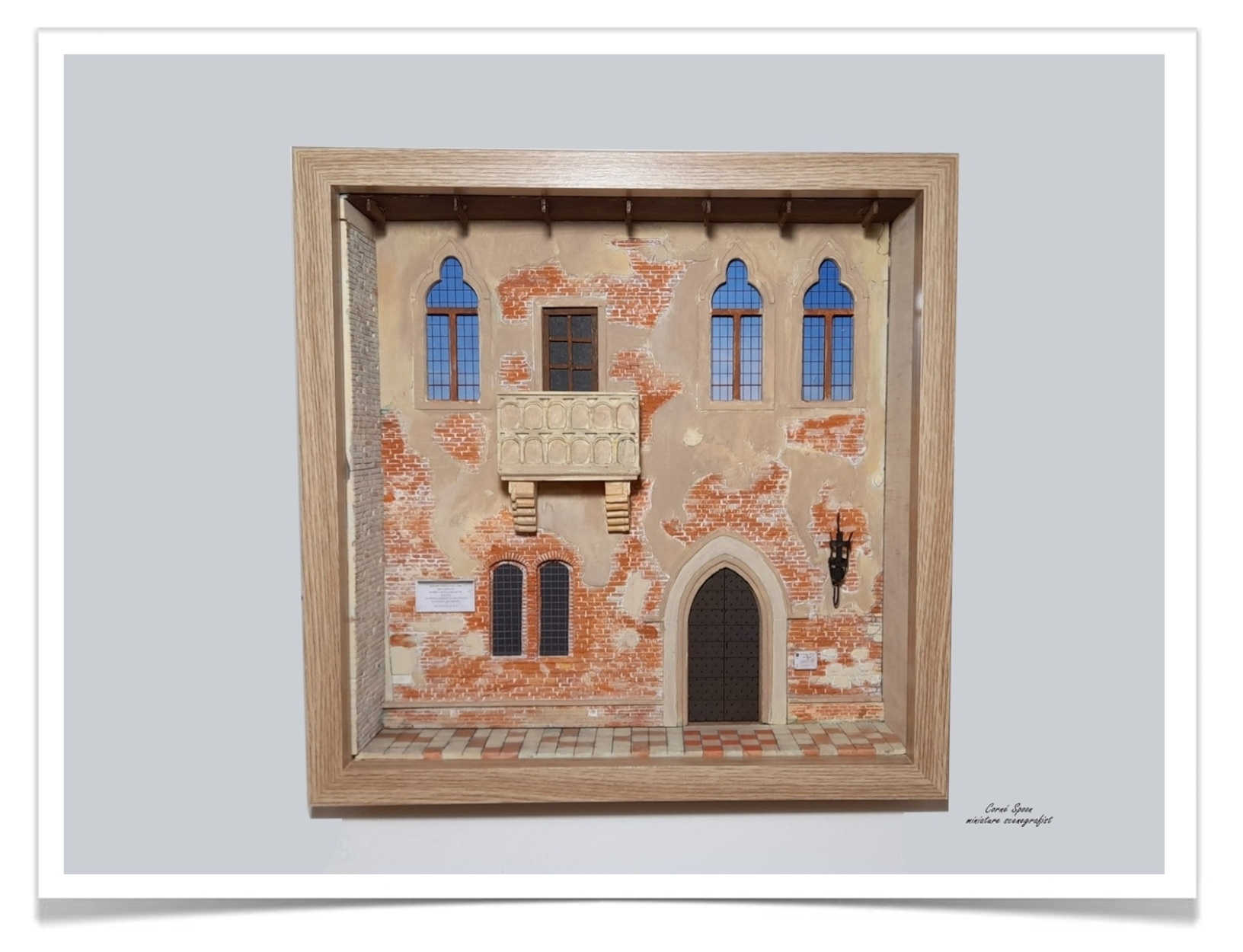 Dit ademt de romantiek van een eeuwenoud liefdesverhaal. Het huis van Casa di Giulietta met het bekende balkon, de verweerde stenen en de zachte kleuren creëren een intiem decor dat meteen aan Verona doet denken. De bogen, ramen en subtiele details geven het geheel diepte en warmte. Een betoverend tafereel dat de tijd even stilzet en de magie van een legendarische ontmoeting voelbaar maakt.