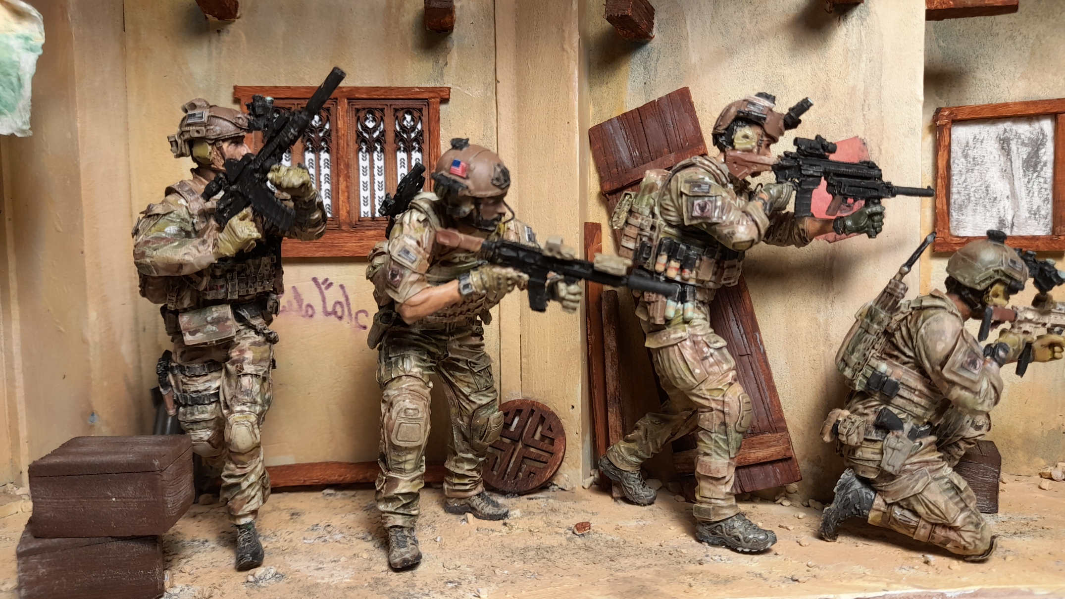 De Naval Special Warfare Development Group (NSWDG), afgekort als DEVGRU ("Development Group") en officieus bekend als SEAL Team Six is de basis van dit diorama in een Midden Oosten scenery.