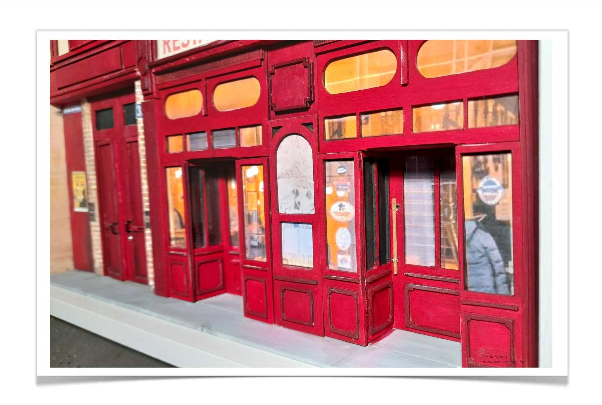 Breng de charme van Lyon in huis met deze met de hand vervaardigde miniatuur van het nog steeds bestaande Restaurant Aux Lyonnais. Elk detail — van de warme verlichting tot de karakteristieke rode gevel — ademt Franse sfeer en vakmanschap. Een uniek kunstwerk dat de ziel van een klassiek Lyonnais restaurant vangt en elke ruimte verrijkt. Perfect voor liefhebbers van Frankrijk, miniaturen en authentieke ambiance.
