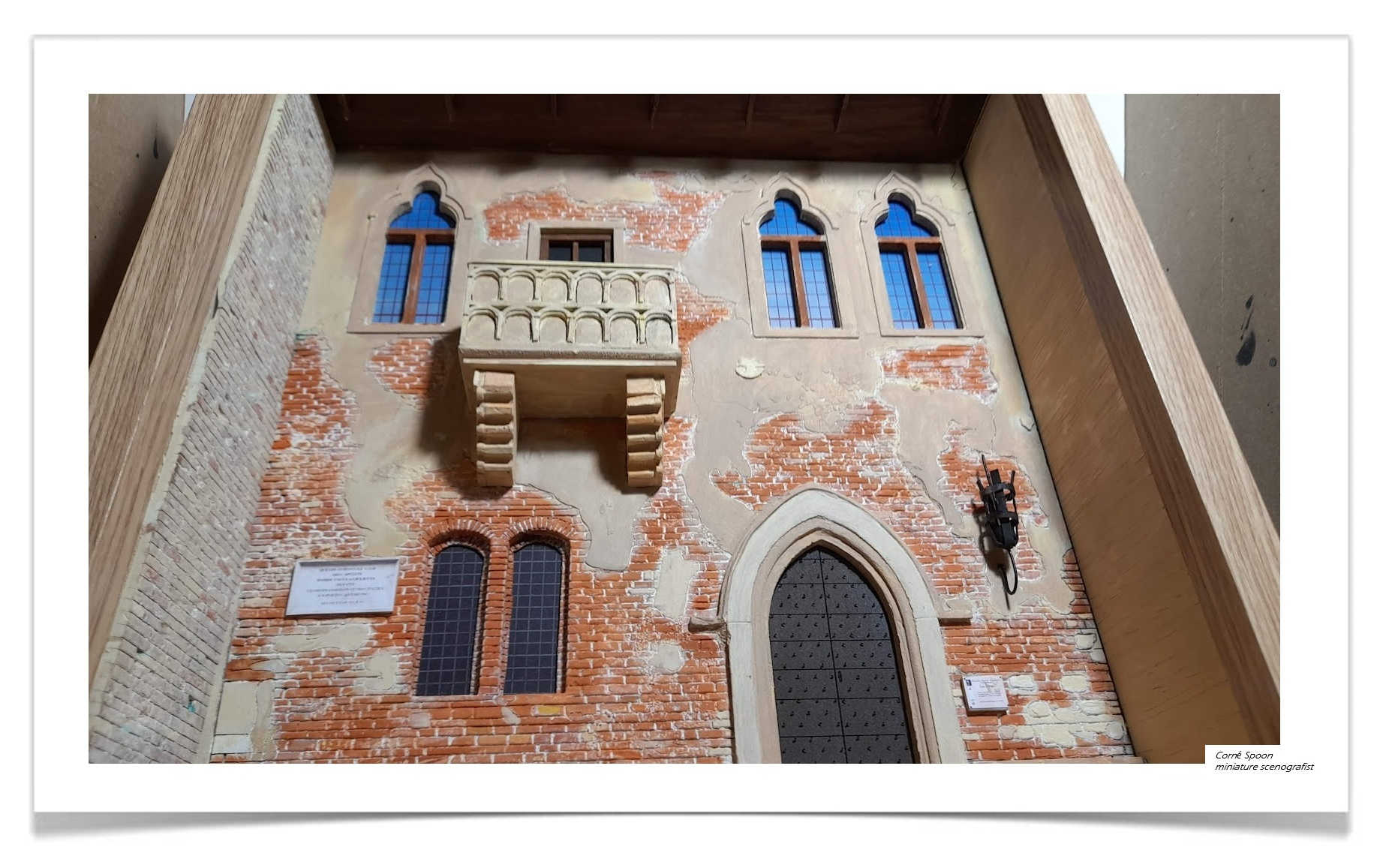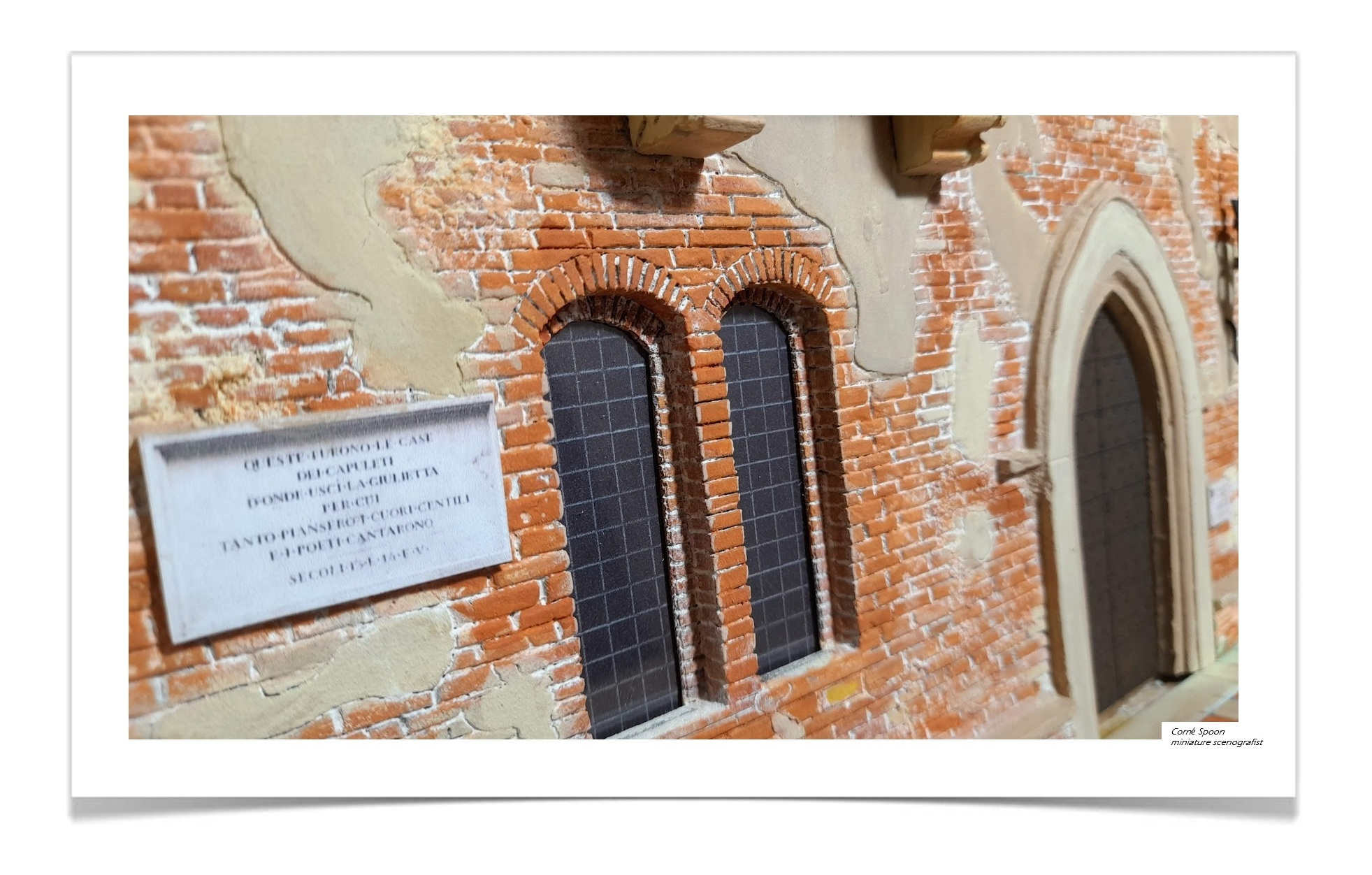 Dit ademt de romantiek van een eeuwenoud liefdesverhaal. Het huis van Casa di Giulietta met het bekende balkon, de verweerde stenen en de zachte kleuren creëren een intiem decor dat meteen aan Verona doet denken. De bogen, ramen en subtiele details geven het geheel diepte en warmte. Een betoverend tafereel dat de tijd even stilzet en de magie van een legendarische ontmoeting voelbaar maakt.