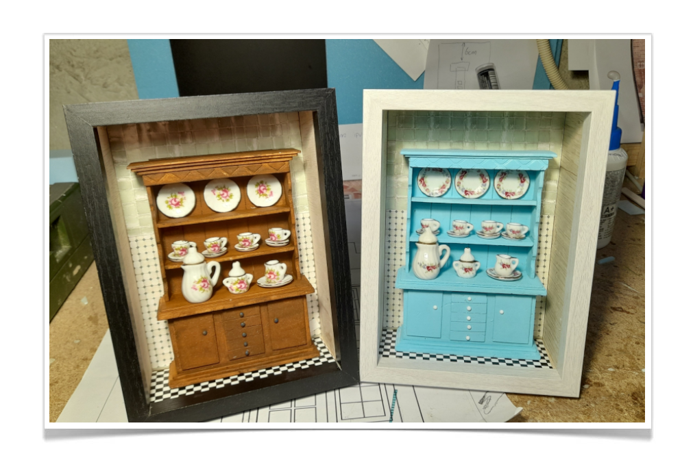 Een ouderwetse keukenkast met het mooiste servies van oma. In 2 kleuren gemaakt